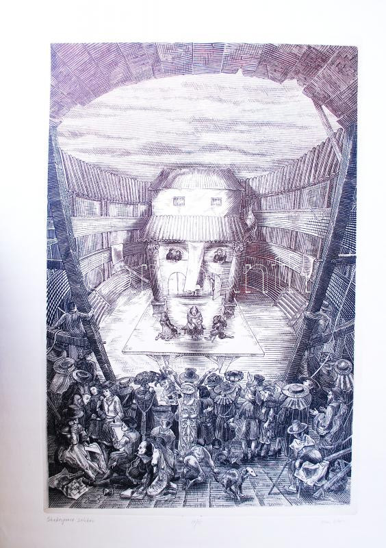Orosz István (1951): Shakespeare színház. Rézkarc, papír, 22/35, jelze...