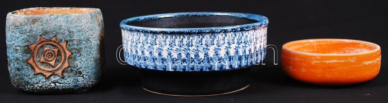 Kis növényi kerámiatétel: iparművész kaspó, virágalátét és szűrő /