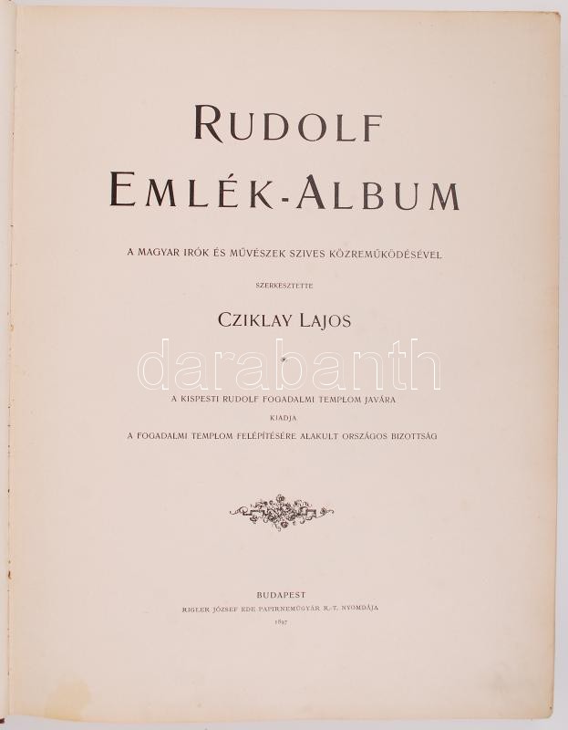 Rudolf emlék-album. A magyar irók és művészek szives közreműködésével ... https://www.darabanth.com/en/185-Online-auction/185.0/Other-collectibles/Books-History~3000035/Rudolf-emlek-album-A-magyar-irok-es-muveszek-szives-kozremukodesevel-szerk-Cziklay-Lajos~II673832
