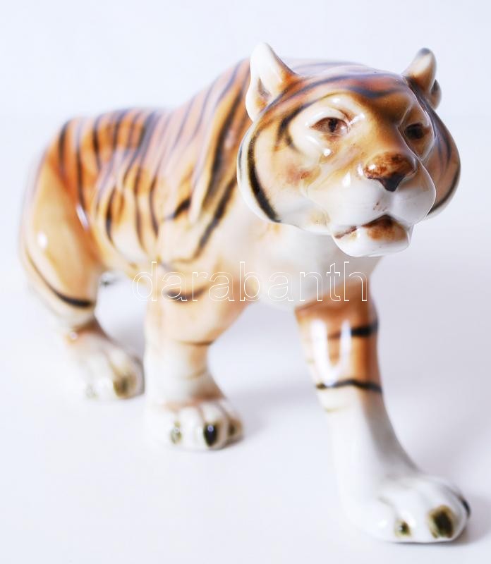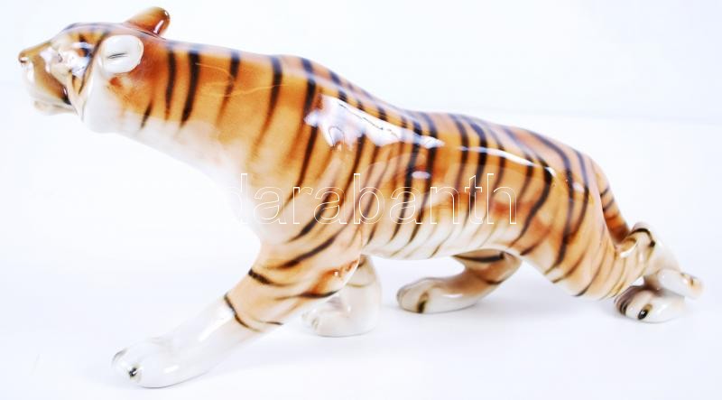 Jelzett porcelán tigris, kézzel festett, hibátlan, h:37 cm, m:17 cm / ...