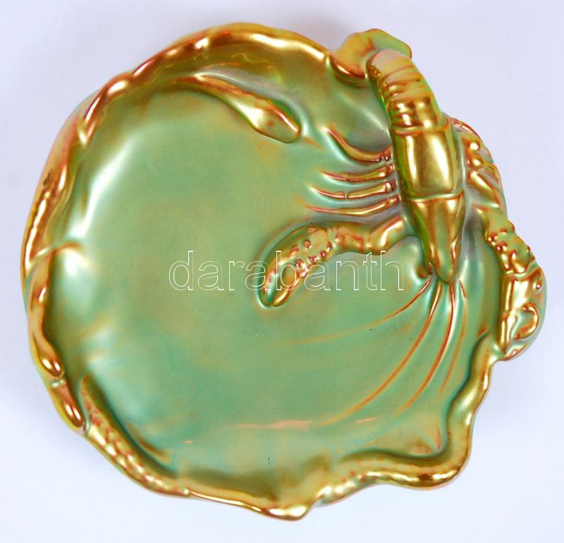 Zsolnay eozin mázas rákos tál, jelzett, hibátlan / Zsolnay Chinaware j...