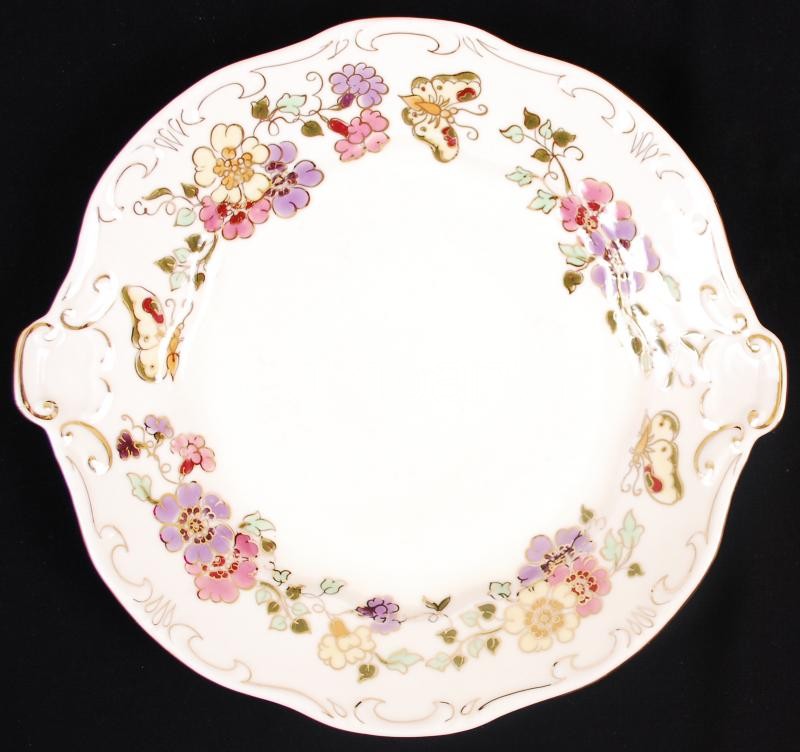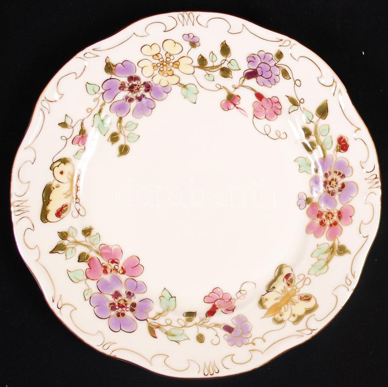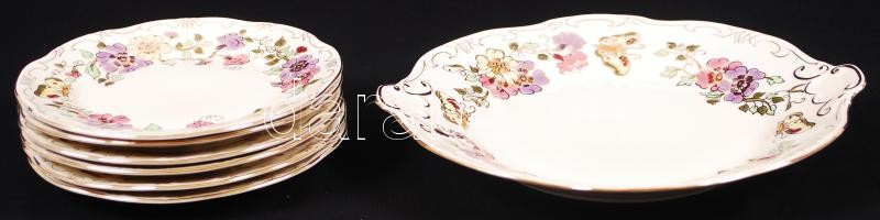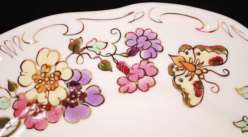 Zsolnay pillangó mintás süteményes készlet, kézzel festett, jelzett, h...