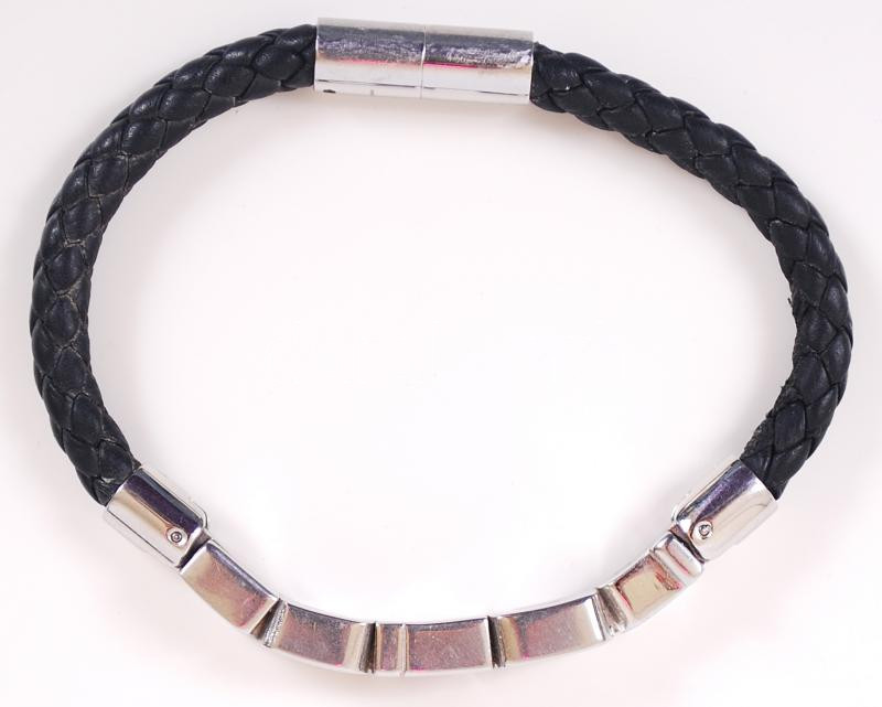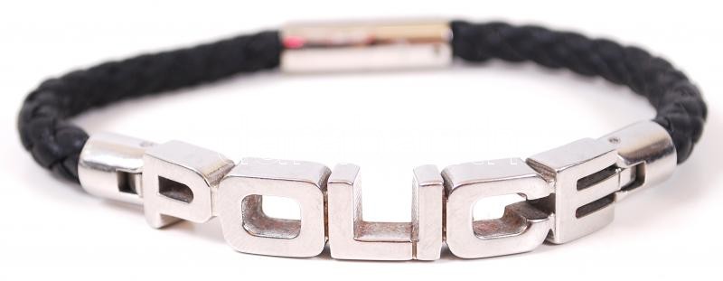 Orvosi fém-bőr karkötő "Police" felirattal, d:7 cm
