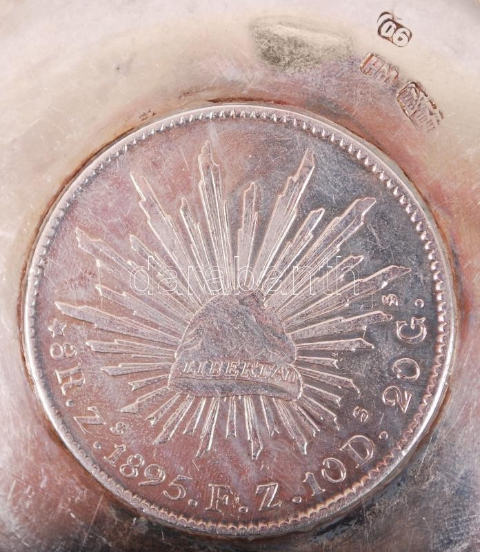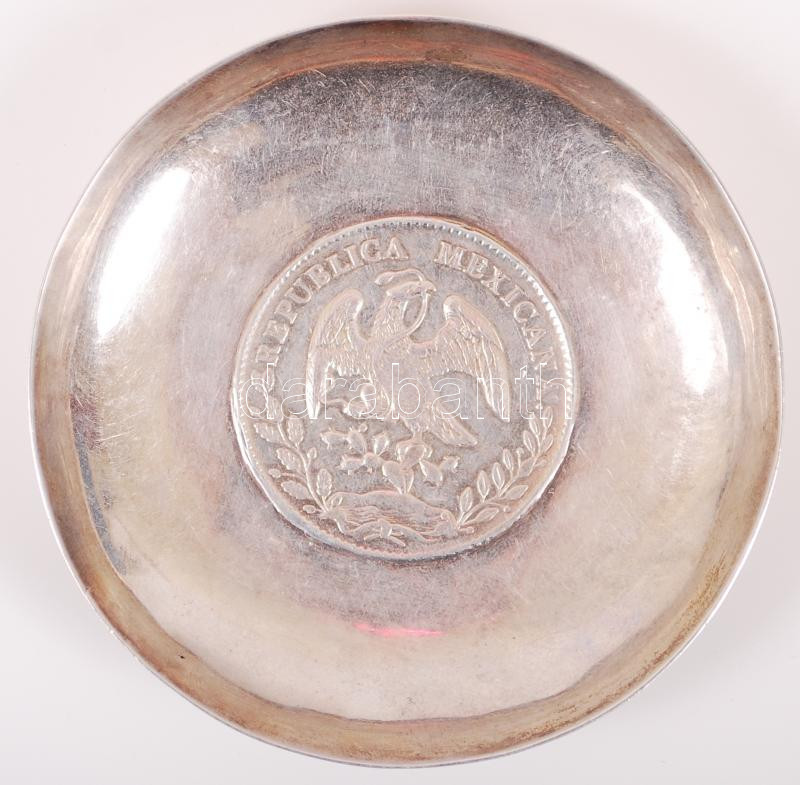 Ezüst (Ag) tálka beleillesztett ezüst (Ag) mexikói érmével /