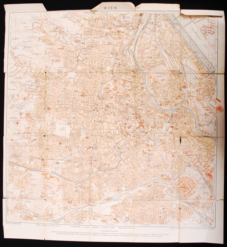 Cca 1930 Bécs térkép, kisebb szakadások, 48×48 cm