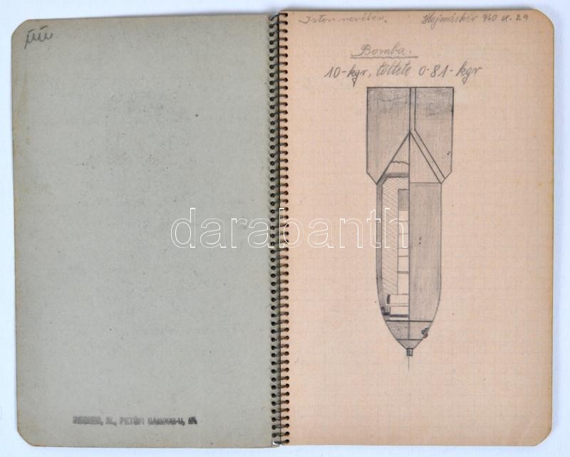 1940 Kézzel írt és rajzokkal illusztrált jegyzetfüzet a különböző bomb... https://www.darabanth.com/en/185-Online-auction/185.0/Other-collectibles/Military~3000013/1940-Kezzel-irt-es-rajzokkal-illusztralt-jegyzetfuzet-a-kulonbozo-bombak-szerkezeterol-~II672884