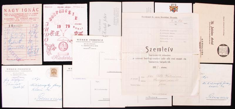 1930-1980 12db bor témájú nyomtatvány: számlák, címkék, szemleív, leve...