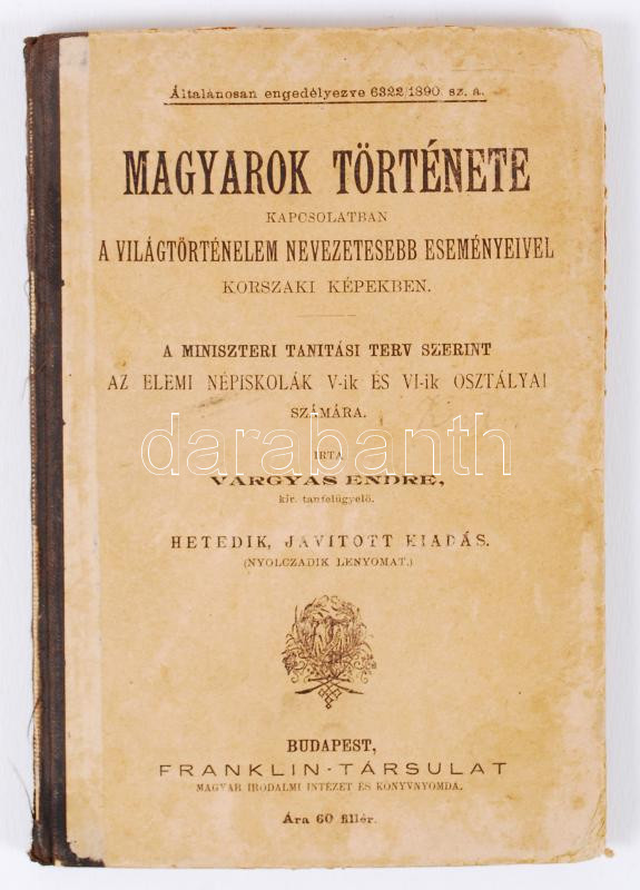 Description: Vargyas Endre: Magyarok Története, A világtörténelem nevezetesebb eseményeivel. Az elemi népiskolák V. és VI. oszt. számára. Bp, 1901. Franklin-Társulat