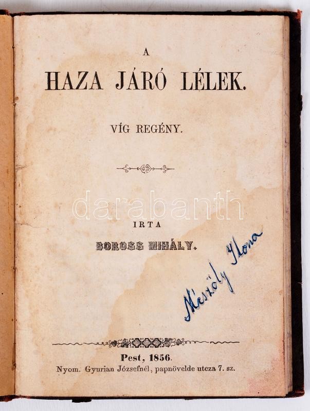 Boross Mihály: A haza járó lélek. Pest, 1856. Nyom. Gyurian Józsefnél, (ázás nyomok)