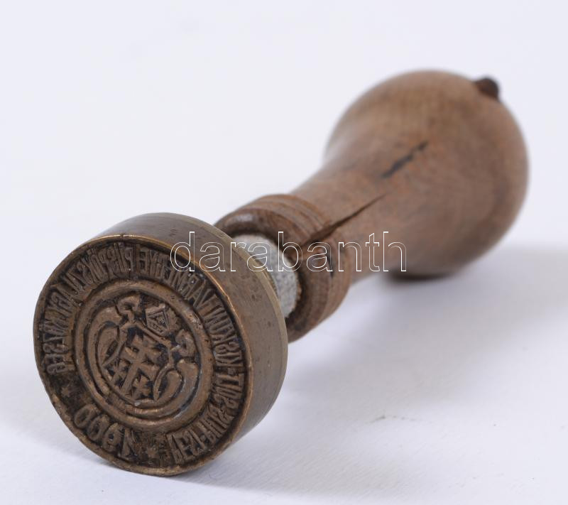 1900 "Pest-Pilis-Solt-Kiskun Vármegye Püspökszilágy Község" feliratú, címeres bronz körbélyegző fa nyéllel, 12cm