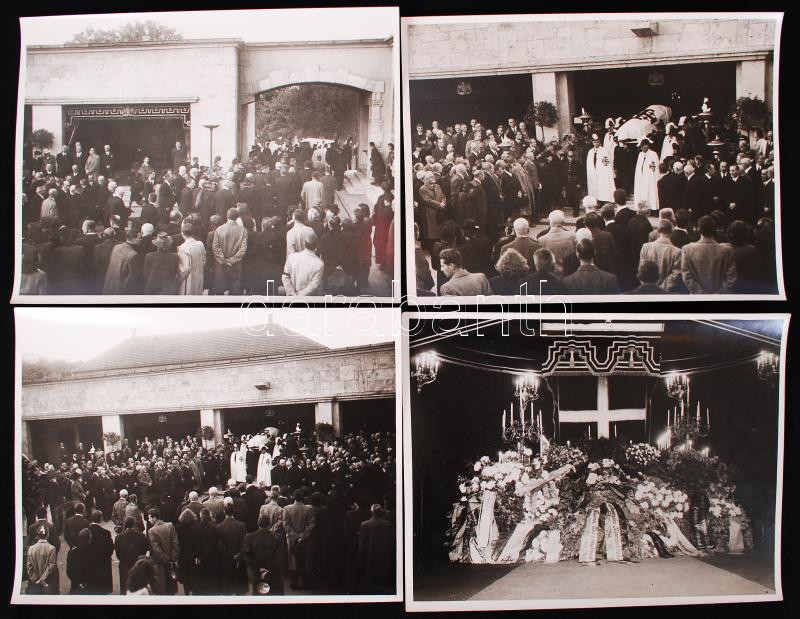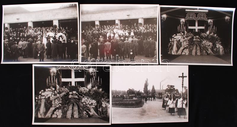 Description: 1943 9db fotó Quirin Leó (1878-1943), az Országos Magyar Bányászati és Kohászati Egyesület elnöke, a Magyar Élet Pártja ózdi országgyűlési képviselője temetéséről, 18x24cm