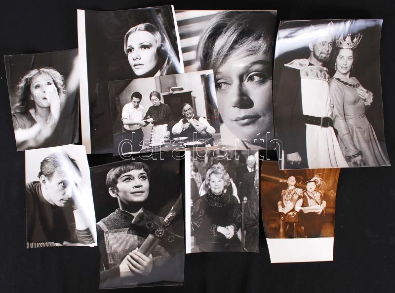 1950-1980 16db sajtófotó magyar színészekről (Mácsai Pál, Márkus László, Tábori Nóra, etc.), 13x18-18x24cm