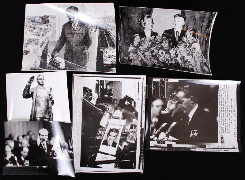 cca 1989 6db fotó, sajtófotó Nicolae Ceausescuról, illetve róla készült portrékról, klf méretben /