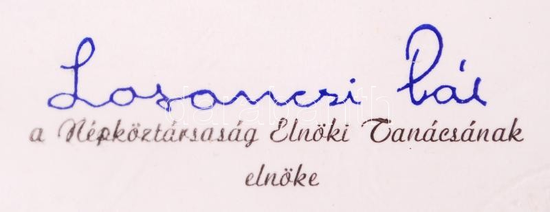 1970 Felszabadulási Jubileumi Emlékérem adományozó okirat Losonczi Pál és Cseterki Lajos aláírásával
