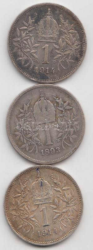 Ausztria 1893-1914. 1K Ag "Ferenc József" (3x) T:3