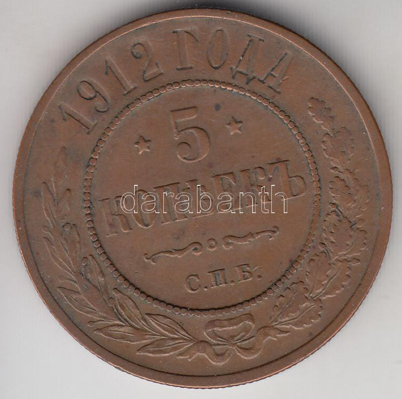 https://www.darabanth.com/en/187-Online-auction/187.0/Numismatics/Foreign-coins~12/Oroszorszag-1912-5k-Cu-T1--3Cbr3ERussia-1912-5-Kopeks-Cu-CAu~II691028