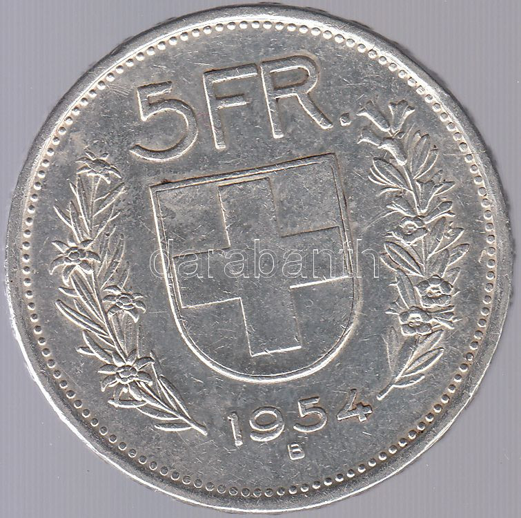https://www.darabanth.com/en/187-Online-auction/187.0/Numismatics/Foreign-coins~12/Svajc-1954B-5Fr-Ag-T2--3Cbr3ESwitzerland-1954B-5-Francs-Ag-CVF~II688646