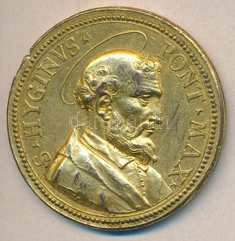 Italy / Papal States 1712. "Pope Hyginus" gold plated Br commemorative coin (38mm) C:XF scratched, edge error