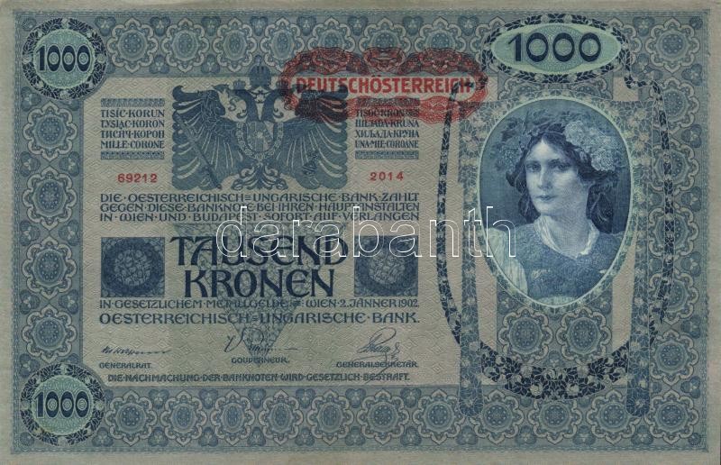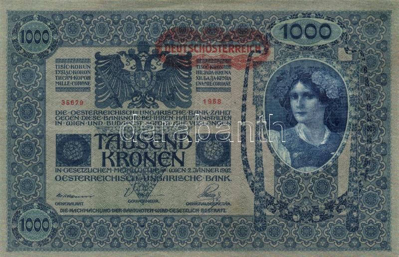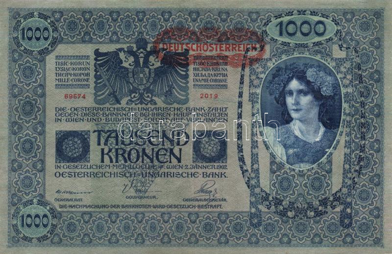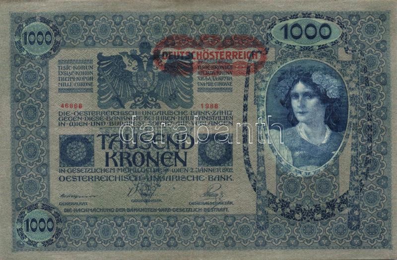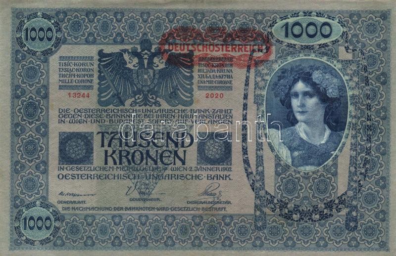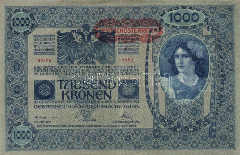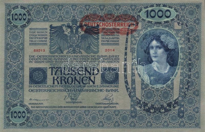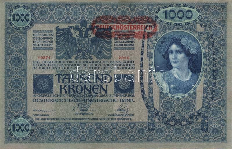 1902. 1000K mindkét oldal német "Deutschösterreich" felülnyomással (10...