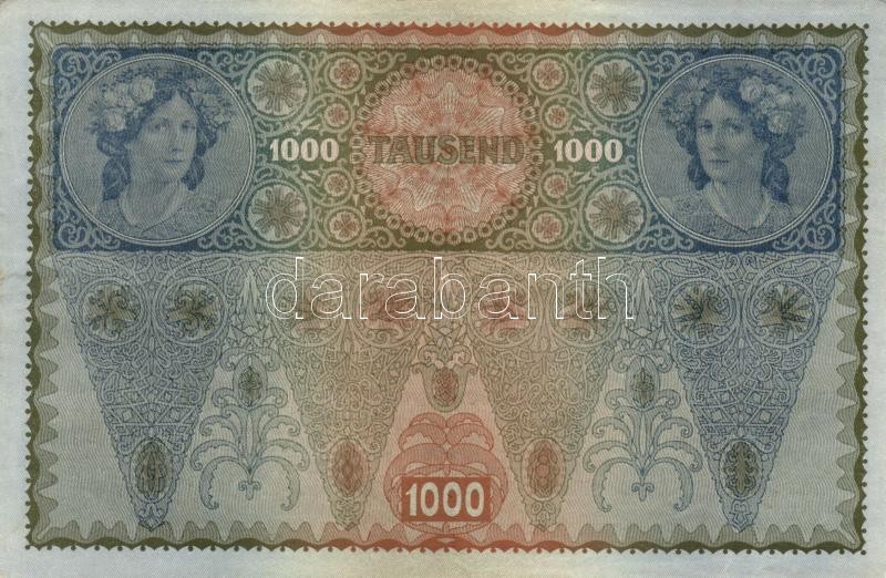 1902. 1000K mindkét oldal német "Deutschösterreich" felülnyomással, II. kiadás T:II-