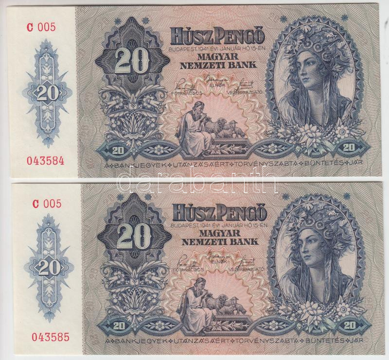 1941. 20P "005" (3x) egymás utáni sorszámmal! T:I