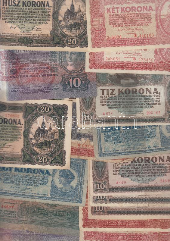 https://www.darabanth.com/en/187-Online-auction/187.0/Numismatics/Hungarian-Banknotes~7/Vegyes-bankjegy-tetel-a-korona-idoszakbol-osszesen-25db-Tvegyes~II690829