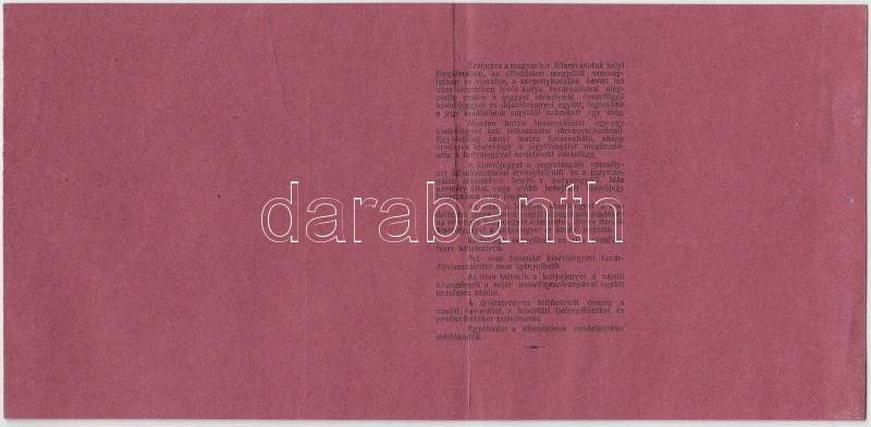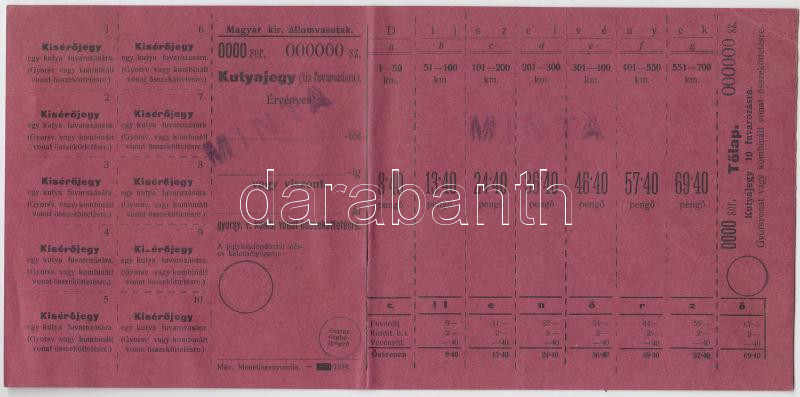 1934. "Magyar Királyi Államvasutak" Kutyajegy 10 fuvarozásra "MINTA" T...