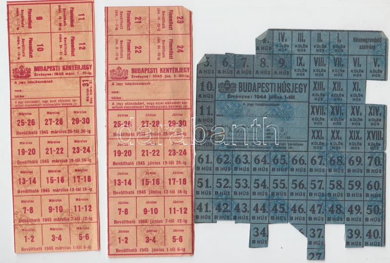 Budapest 1945. "Budapesti kenyérjegy" (2x) + "Budapesti húsjegy" T:II-