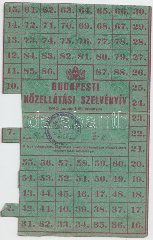Budapest 1945. "Budapesti közellátási szelvényív" T:II-
