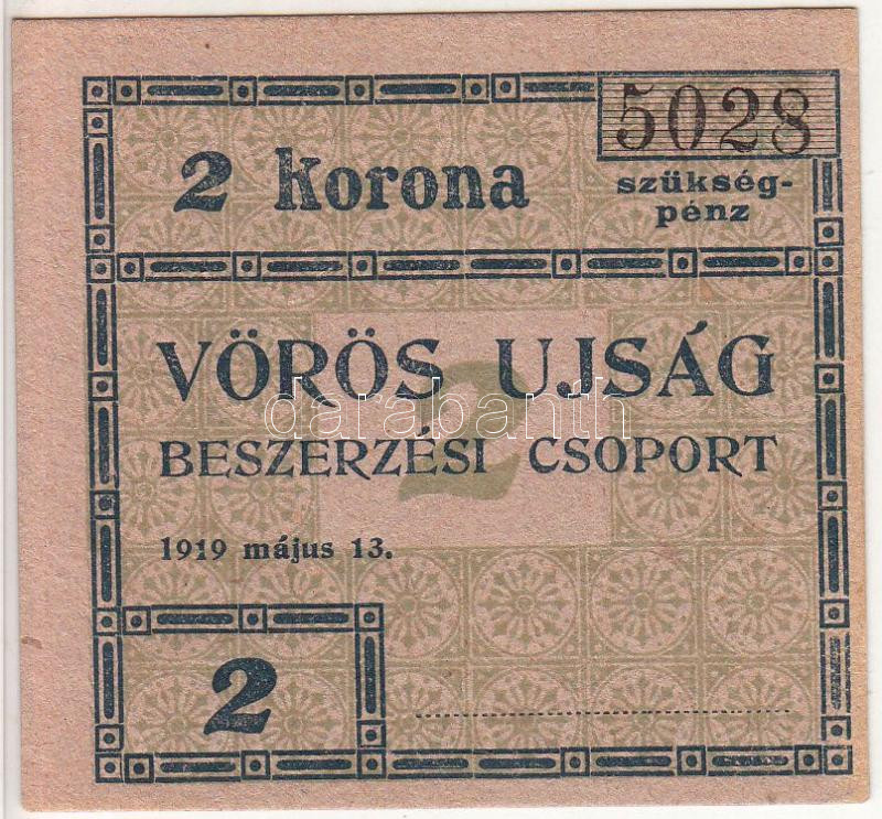 https://www.darabanth.com/en/187-Online-auction/187.0/Numismatics/Hungarian-and-foreign-emergency-notes-and-coins-tokens~6/Budapest-Voros-Ujsag-1919-2K-TI~II691588