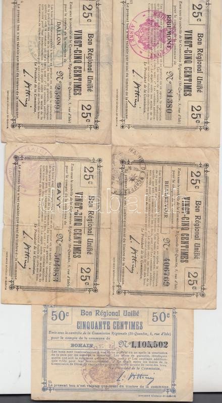 Franciaország/Bohain/Savy/Ribemont/Dallon/Beaurevoir 5db klf városi utalvány 25c/50c értékben T:III