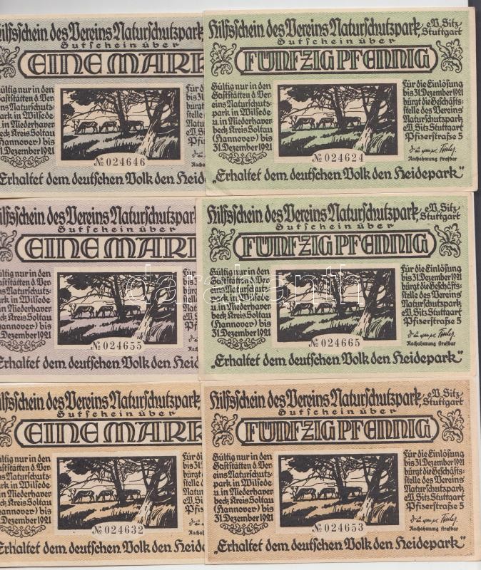 Germany-Weimar Republic/Stuttgart/Vereins Naturschutzpark 1923. 50 Pfennig (3x) different + 1 Mark (3x) different C:XF(unfolded, just crease)