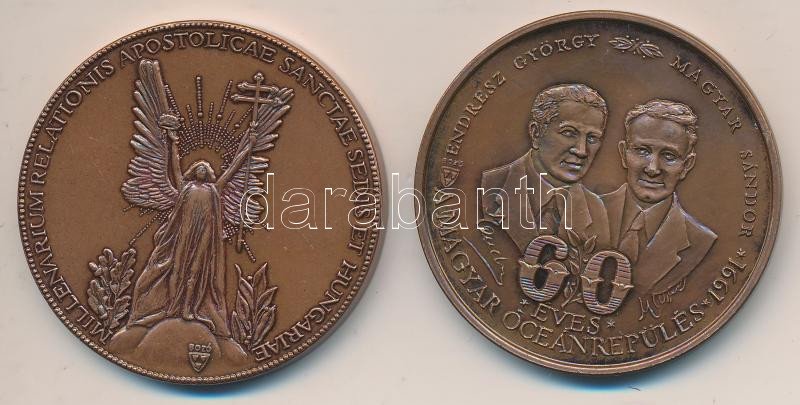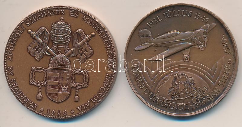Bozó Gyula (1913-2004) 1991. "60 éves a Magyar Óceánrepülés" + 1996. "Ezeréves az Apostoli Szentszék és Magyarország kapcsolata" Br emlékérmek T:1