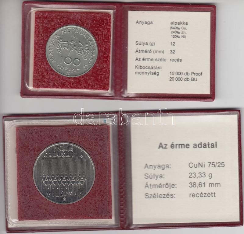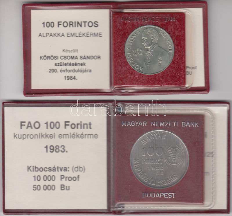 https://www.darabanth.com/en/187-Online-auction/187.0/Numismatics/Hungarian-metal-and-silver-coins~8/1983-100Ft-FAO-plus-1984-100Ft-Korosi-Csoma-Sandor-TBU-Eredeti-tokban-tanusitvannyal~II691379
