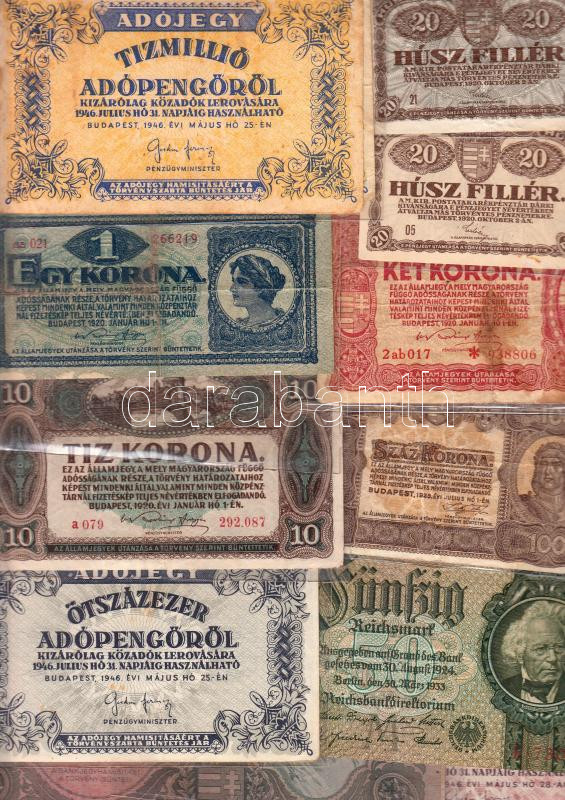 126db-ból álló bankjegy gyűjtemény, főleg magyar pengők, adópengők, emellett néhány külföldi papírpénz is T:vegyes