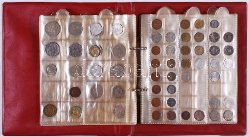 Description: 135db-ból álló hobbigyűjtemény fémpénzekből bordó gyűrűs éremtartó albumban 25 berakólappal T:vegyes