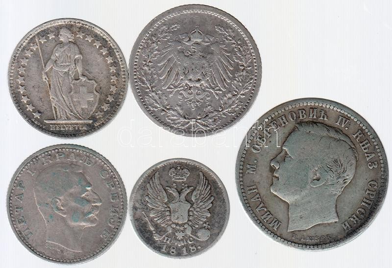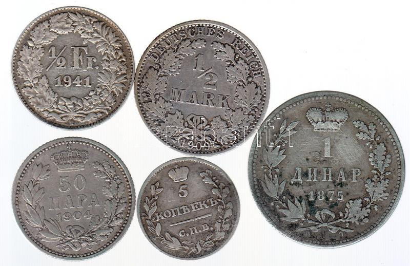 Vegyes 5db-ból álló külföldi ezüstpénz tétel T:vegyes