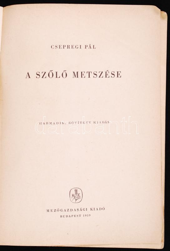 https://www.darabanth.com/en/187-Online-auction/187.0/Other-collectibles/Books-Kitchen-and-garden~6000028/Csepregi-Pal-A-szolo-metszese-Harmadik-bovitett-kiadas-Mezogazdasagi-Kiado-Bp-1959~II689493