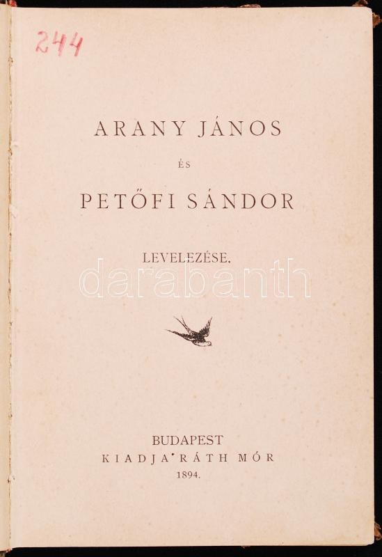 https://www.darabanth.com/en/187-Online-auction/187.0/Other-collectibles/Books-Other-rarities~6000040/Arany-Janos-es-Petofi-Sandor-Levezetese-Budapest-1894-Rath-Mor-Kiado-Kismeretu-konyv-~II692087