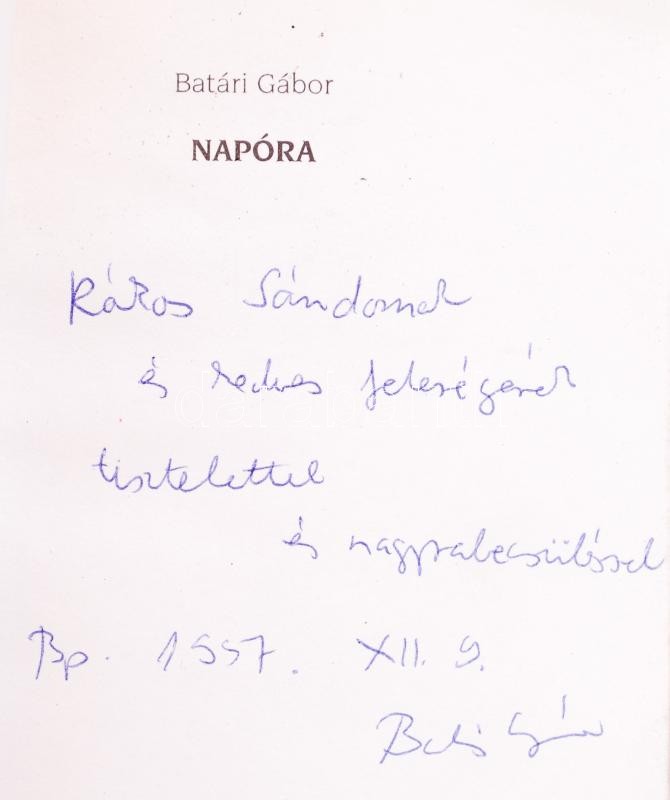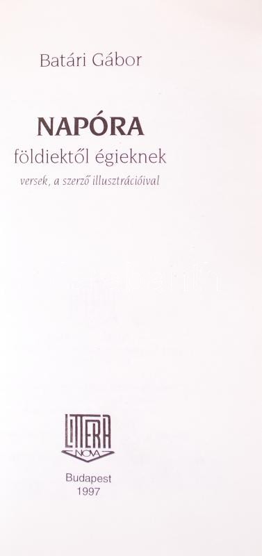 Batári Gábor: Napóra földiektől égieknek. Dedikált! Bp., 1997 Litera
