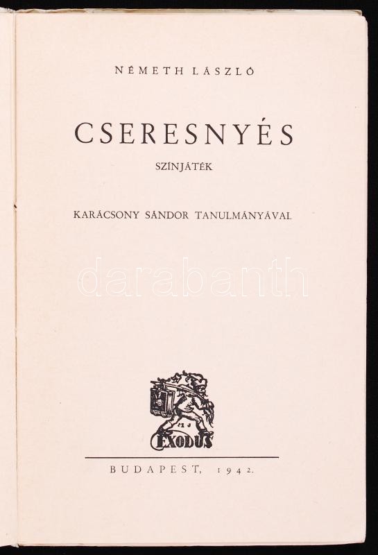 https://www.darabanth.com/en/187-Online-auction/187.0/Other-collectibles/Books-Other-rarities~6000040/Nemeth-Laszlo-Cseresnyes-Budapest-1942-Exodus-Elso-kiadas~II692839