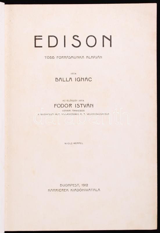 https://www.darabanth.com/en/187-Online-auction/187.0/Other-collectibles/Books-Science-and-thechnology~6000029/Karrierek-sorozatbol-Balla-Ignac-Edison-Budapest-1912-Karrierek-Kiadohivatala-8-keppel-~II691082