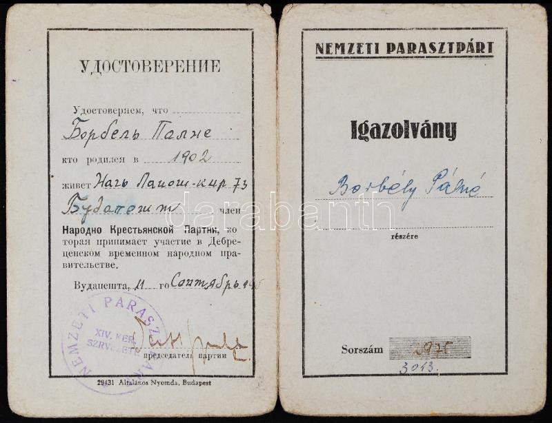 https://www.darabanth.com/en/187-Online-auction/187.0/Other-collectibles/Documents~6000015/1945-Ketnyelvu-Parasztpart-igazolvany~II690114