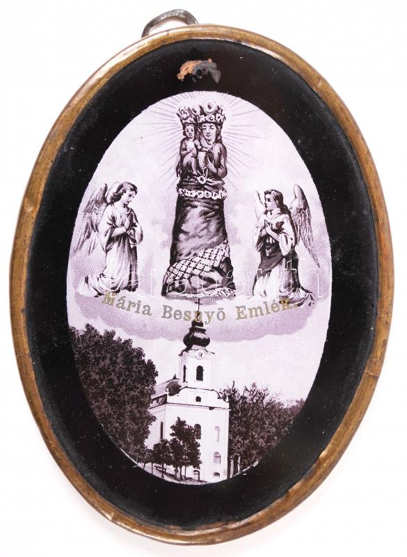cca 1900 Máriabesnyői emlék, réz keretben, 9cm