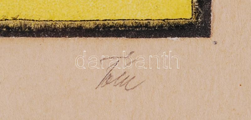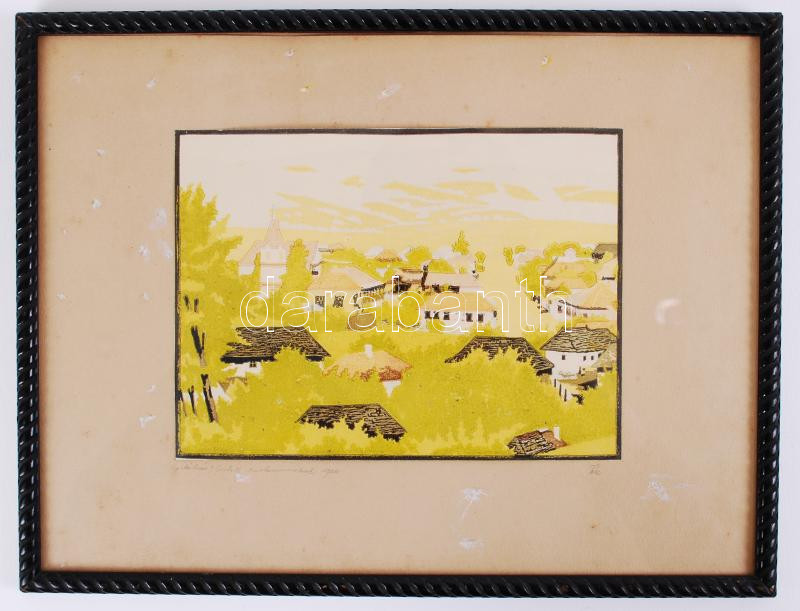 Tóth István (1892 - 1964): Málnás. Színezett linó, jelzett, üvegezett ...