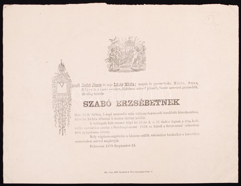 1879 Díszes, illusztrált gyászjelentés