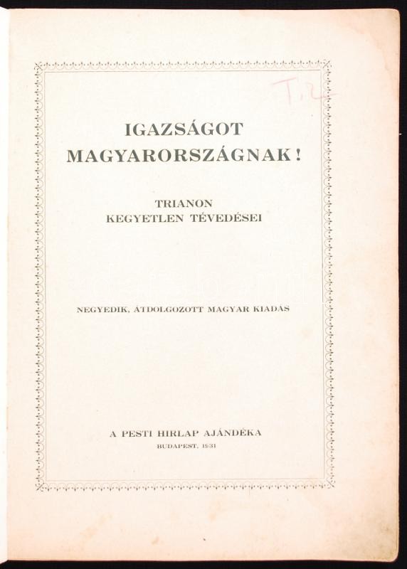 https://www.darabanth.com/en/187-Online-auction/187.0/Other-collectibles/Printed-Materials~6000026/1931-Igazsagot-Magyarorszagnak-Trianon-kegyetlen-tevedesei-Negyedik-atdolgozott-kiadas-Bud~II693408