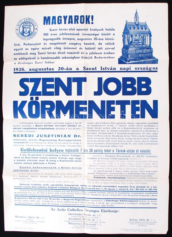 1938 Szent Jobb Körmenet nagyméretű plakátja 50x70 cm
