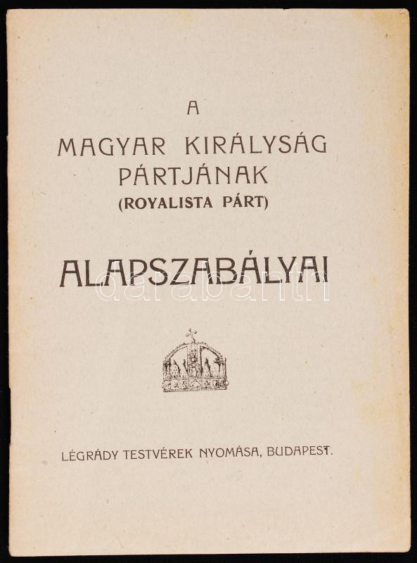 A Magyar Királyság Pártjának alapszabályzata. Légárdy Testvérek. Budapest É.n.