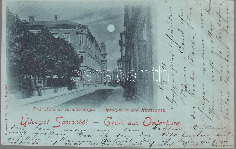 1898 Sopron, Reáliskola és templom utca (wet damage)
